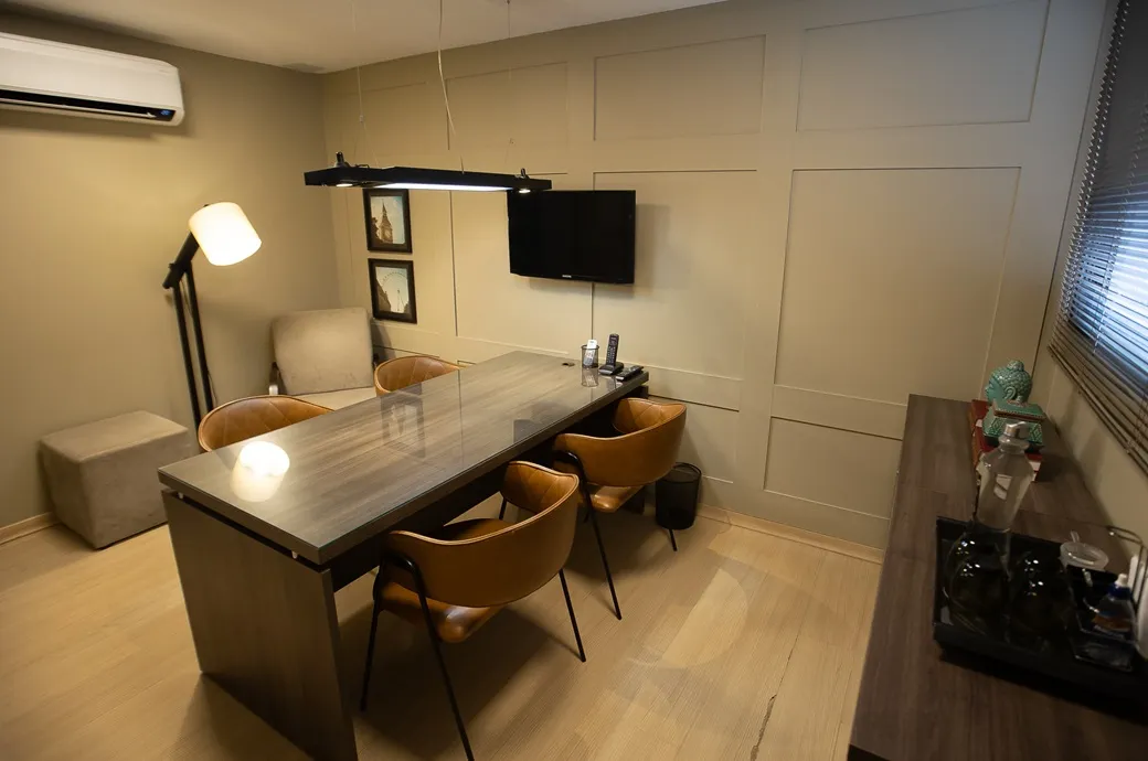 Escritório estruturado, com uma boa equipe, deixou a sala preparada e arrumada dentro do horário. A sala de reunião é de excelente qualidade, muito bonita, comporta um número elevado de pessoas e algo importante de lembrar, as cadeiras são bastantes confortáveis. E o fato de ter três vagas na frente é útil e prático. Provavelmente, utilizarei esse escritório mais vezes.
